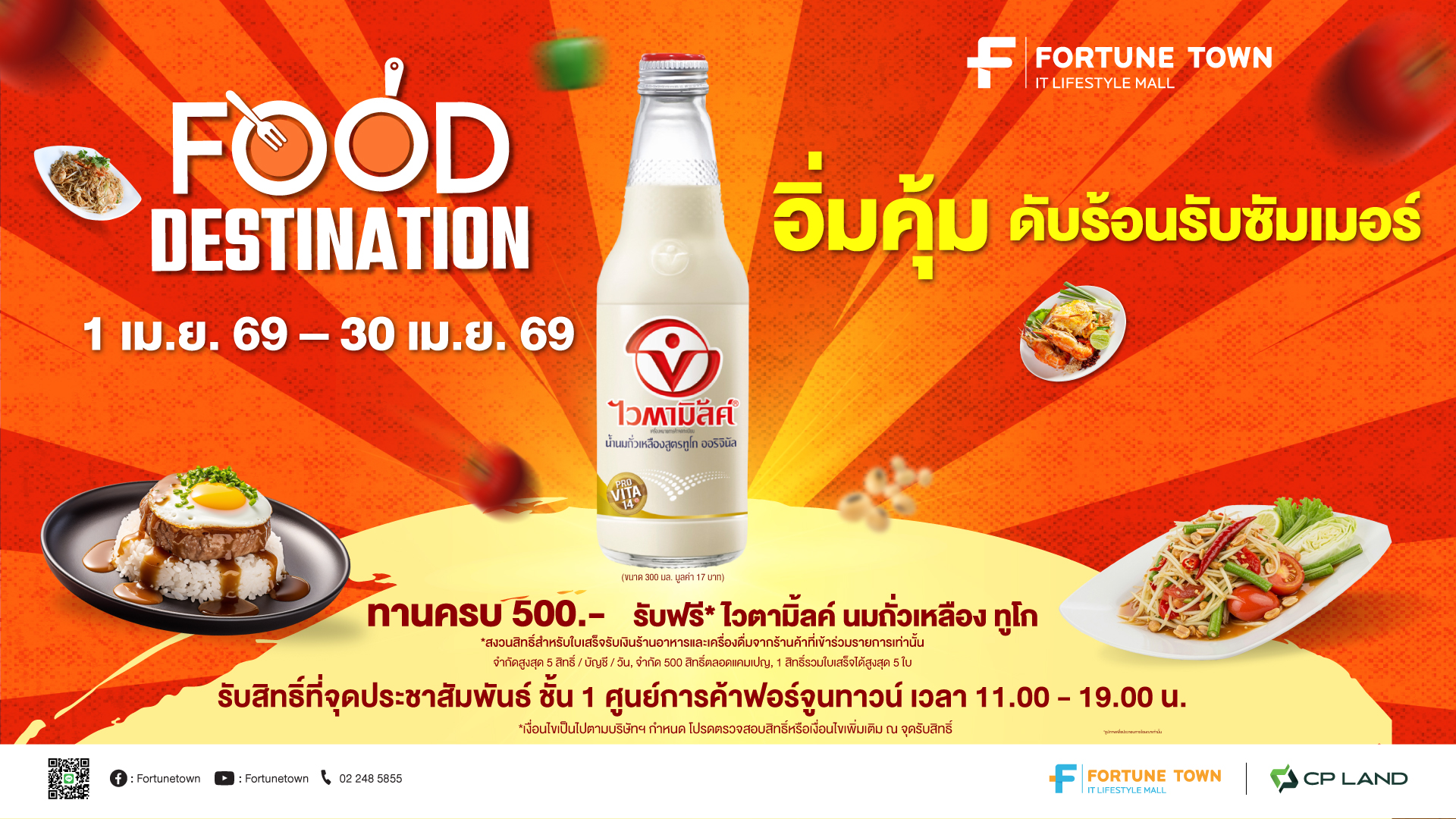 🍝 อิ่มคุ้ม…ดับร้อนรับซัมเมอร์ 🍴𝙁𝙊𝙊𝘿 𝘿𝙀𝙎𝙏𝙄𝙉𝘼𝙏𝙄𝙊𝙉 อร่อยลงตัว กับร้านอาหารและเครื่องดื่มที่ FortuneTown 🧋🍤 อิ่มท้องแล้วยังรับฟรี* ไวตามิ้ลค์ นมถั่วเหลือง ทูโก😋 เงื่อนไข 1. แสดงใบเสร็จรับเงินที่ออกจากเครื่องแคชเชียร์ หรือใบเสร็จเต็มรูปแบบ ที่ถูกต้องตามกฎหมาย เท่านั้น ที่ใช้จ่ายร้านอาหารและเครื่องดื่ม ภายในศูนย์การค้าฟอร์จูนทาวน์ ภายในวันที่ใช้จ่าย เท่านั้น 2. ขอสงวนสิทธิ์สำหรับใบเสร็จเขียนมือ, สำเนาใบเสร็จ, ใบเสร็จ Copy, ใบเสร็จ Reprint, ใบวางบิล, ใบ Preview รายการ, บิลเงินสด ไม่เข้าร่วมทุกกรณี 3. ใบเสร็จฯ ร้านอาหารและเครื่องดื่มที่ไม่สามารถร่วมรายการได้ มีดังนี้ 3.1 ใบเสร็จ ของศูนย์อาหาร Food World และ Lotus’s Food court 3.2 ใบเสร็จฯ ของ Lotus’ s , 7-11 และโรงแรมอวานี […]