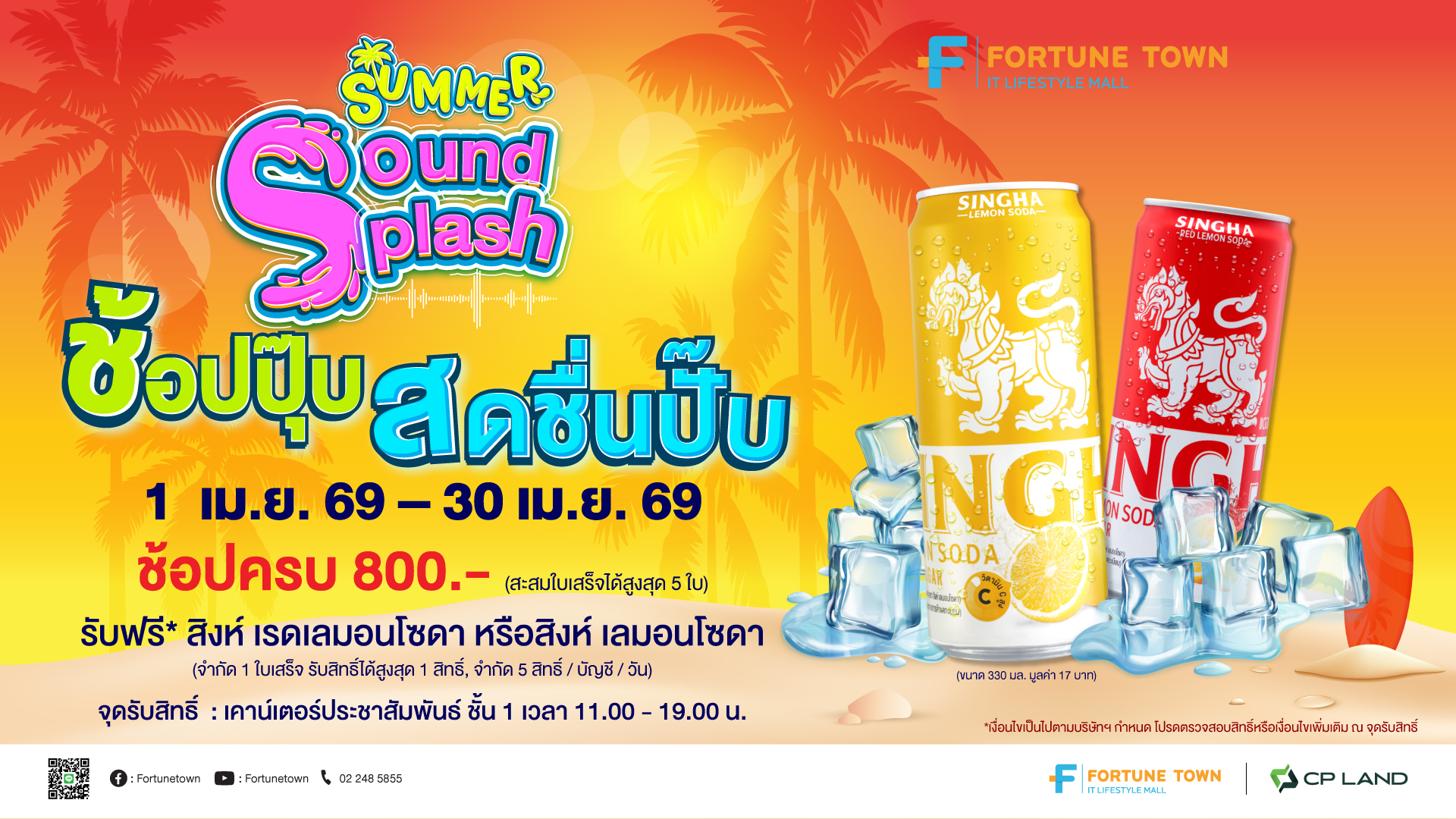 ⛱🍉🌞 ช้อปปุ๊บ สดชื่นปั๊บ❗️ ช้อปมันส์แบบไม่มียั้งกับแคมเปญต้อนรับหน้าร้อน 💦 Summer Sound Splash เงื่อนไข 1. สมาชิก Fortune Point แสดงใบเสร็จรับเงินที่ออกจากเครื่องแคชเชียร์ หรือใบเสร็จเต็มรูปแบบ ที่ถูกต้องตามกฎหมาย เท่านั้น ที่ใช้จ่ายในร้านค้าที่ร่วมรายการภายในศูนย์การค้าฟอร์จูนทาวน์ ภายในวันที่ใช้จ่าย เท่านั้น 2. สงวนสิทธิ์สำหรับใบเสร็จเขียนมือ, สำเนาใบเสร็จ, ใบเสร็จ Copy, ใบเสร็จ Reprint, ใบวางบิล, ใบ Preview รายการ, บิลเงินสด ไม่เข้าร่วมทุกกรณี 3. สมาชิก Fortune Point สามารถแลกรับเครื่องดื่ม สิงห์เลมอนโซดา จำนวน 1 กระป๋อง มูลค่า 17 บาท (ไม่สามารถเลือกรสชาติได้) เมื่อมียอดซื้อสินค้าครบ 800 บาทขึ้นไป โดยคำนวณจากยอดชำระเงินจริง 4. สามารถสะสมใบเสร็จได้สูงสุด 5 ใบเสร็จ ภายในวันที่ใช้จ่าย / การแลกรับสิทธิ์ […]
