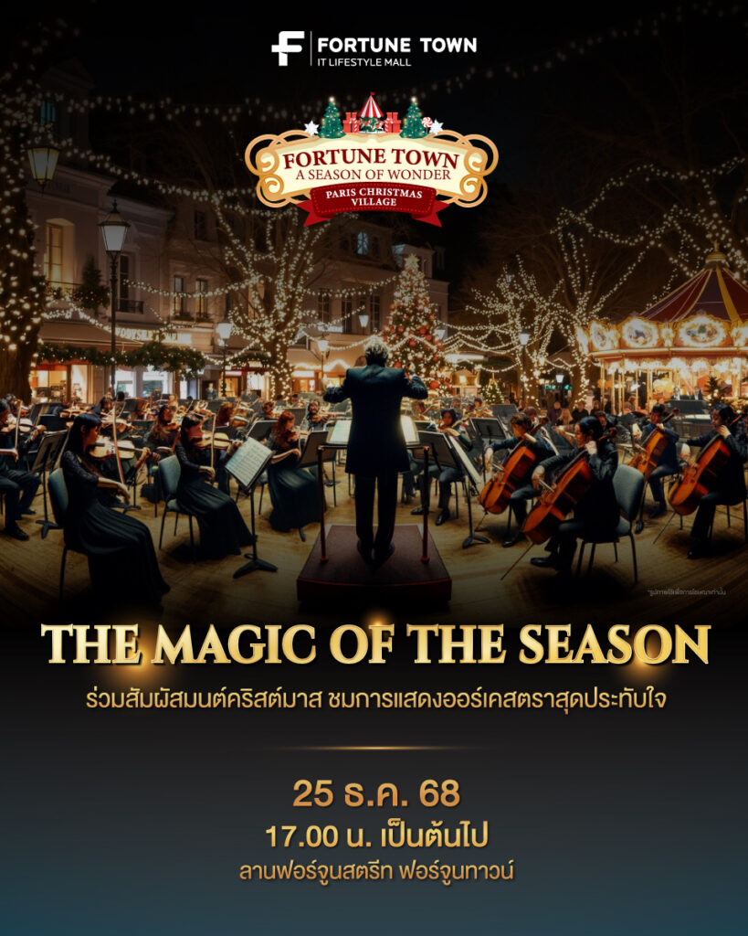 The Magic of A Season of Wonder Posted On 18 December 2025 webmaster · ฟอร์จูนทาวน์เชิญร่วมสัมผัสบรรยากาศแห่งความมหัศจรรย์ในกิจกรรม The Magic of A Season of Wonder บทเพลงเสียงออร์เคสตราที่จะโอบล้อมหัวใจคุณด้วยความอบอุ่นและความสุข 🎶 ✨ มาร่วมสร้างความทรงจำล้ำค่าไปด้วยกัน🕔 17.00 น. เป็นต้นไป📍ลานฟอร์จูนสตรีท