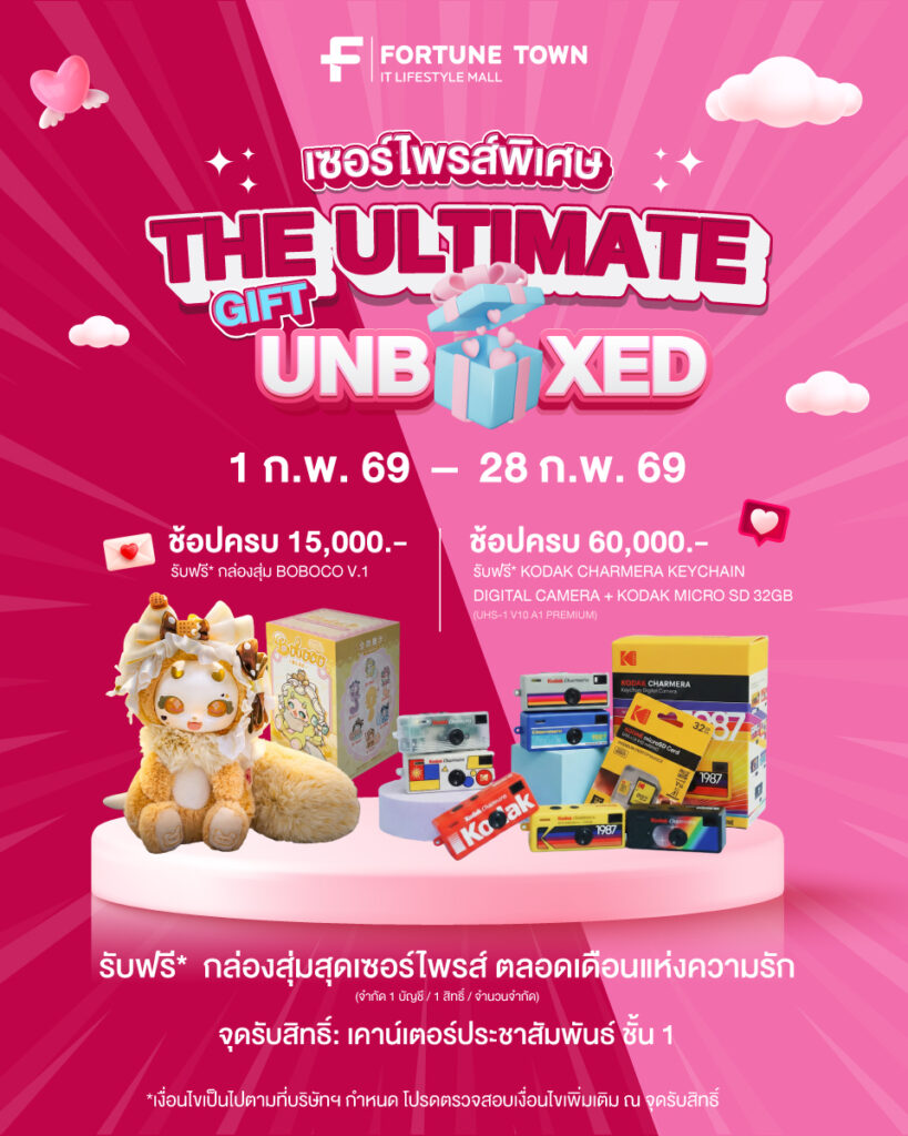 The Ultimate Gift Unboxed ฉลองเดือนแห่งรักที่ฟอร์จูนทาวน์ ช้อปคุ้ม รับฟรี* ของขวัญพิเศษแทนใจตลอดเดือนแห่งความรัก กับ “กล่องสุ่มสุดเซอร์ไพรส์” ที่ไม่ควรพลาด